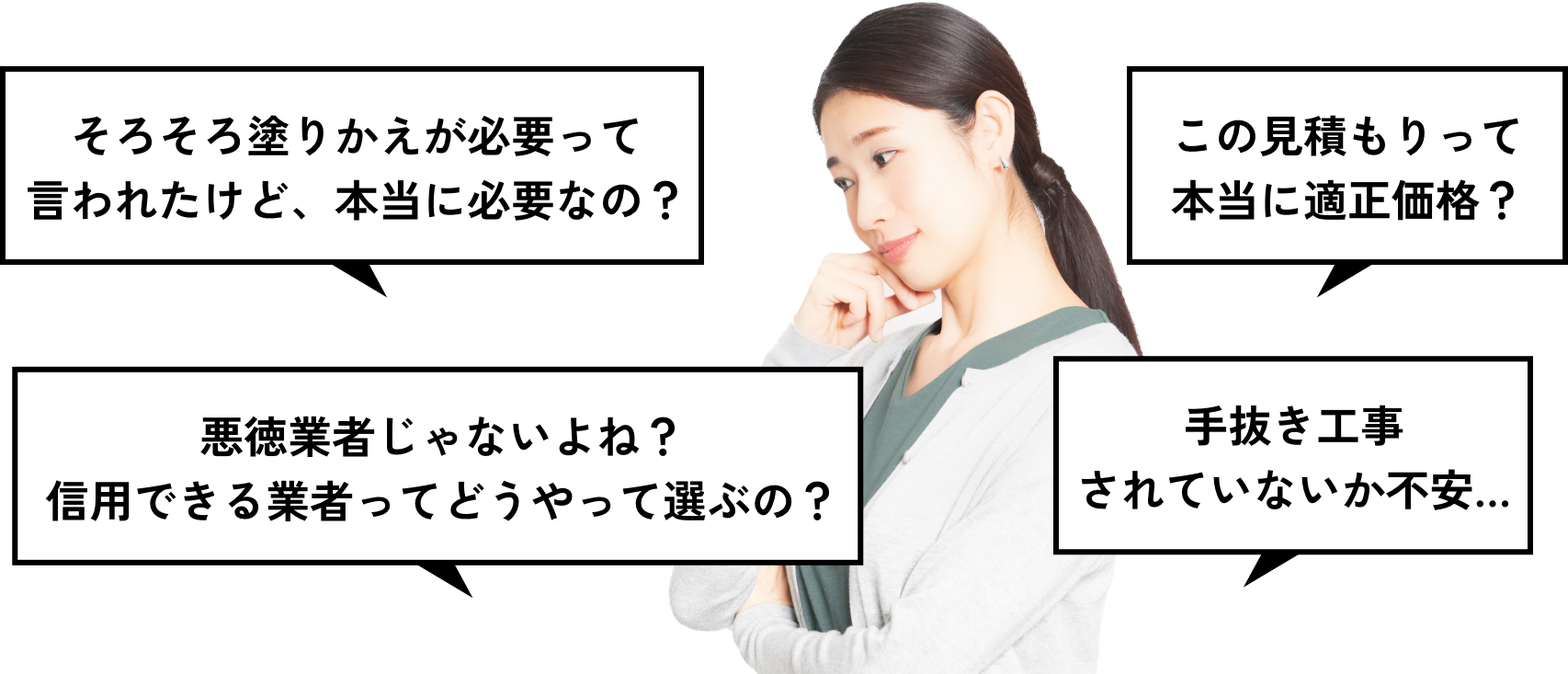 業者ごと、塗料の種類も、工事内容も様々。相見積の金額だけで判断するのは危険です。